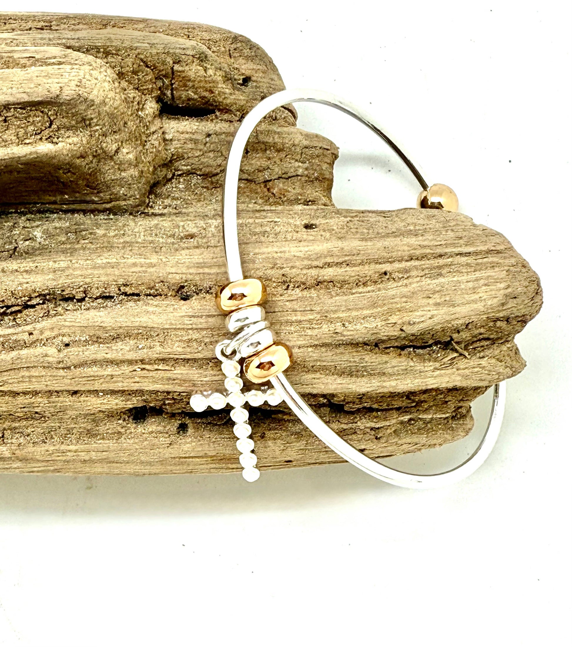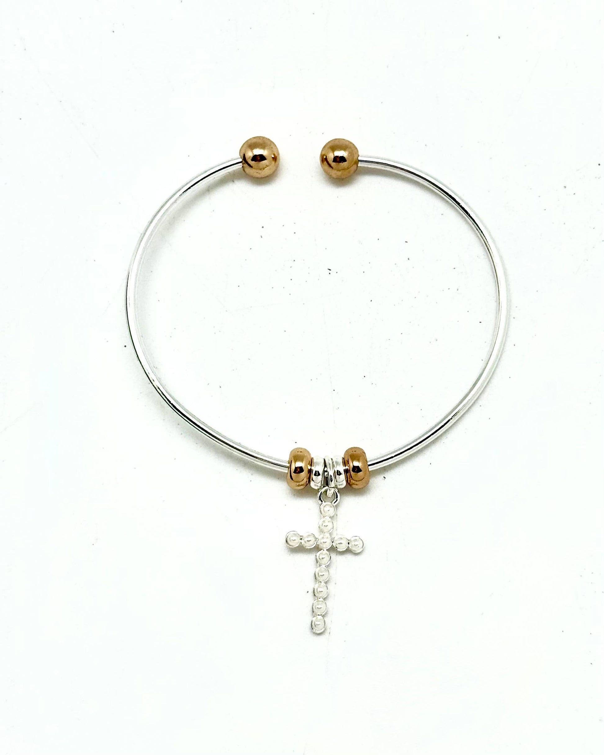 Bracelet Cuff Alloy Plated Silver with PearlGlass Bead Cross