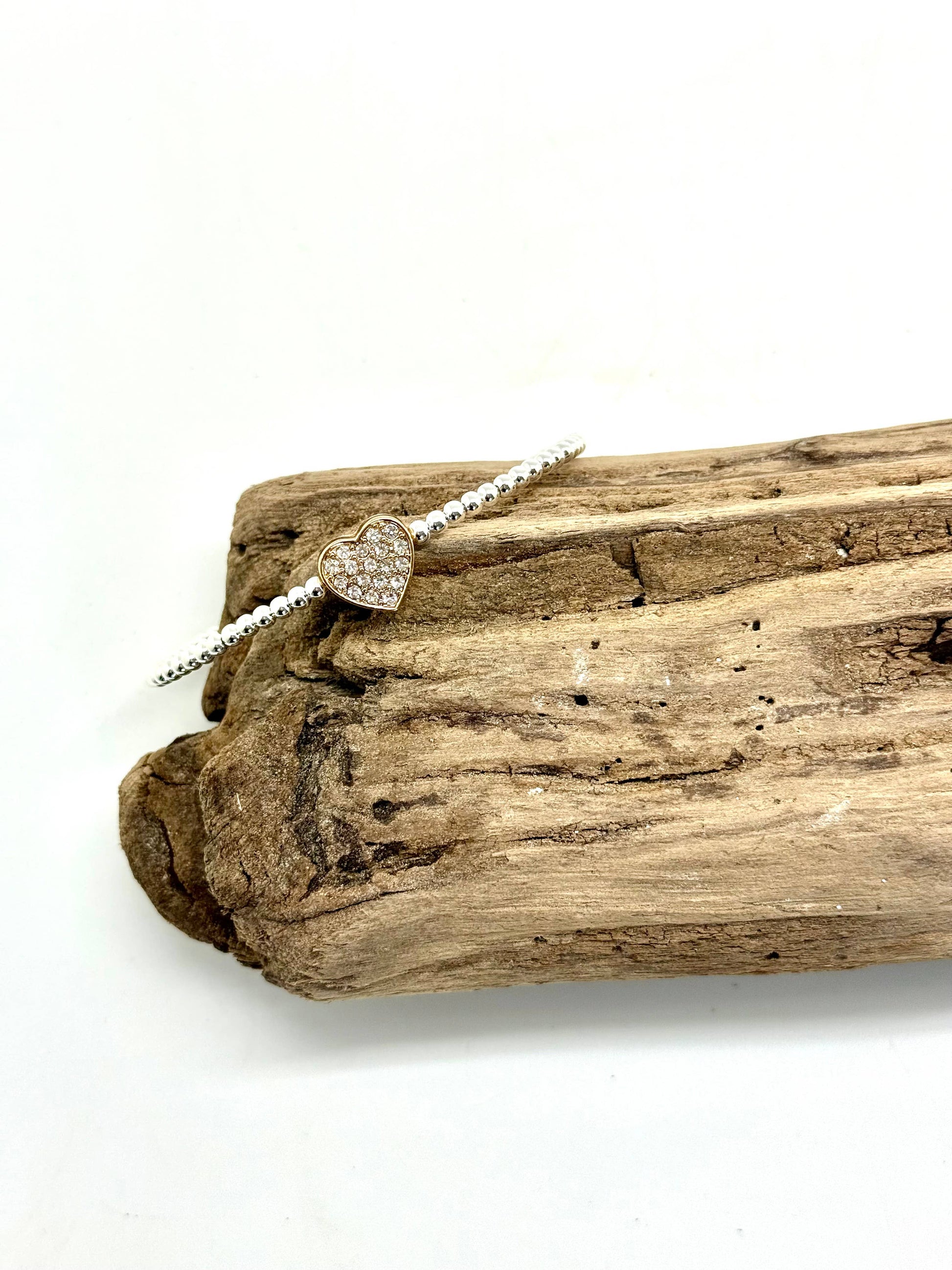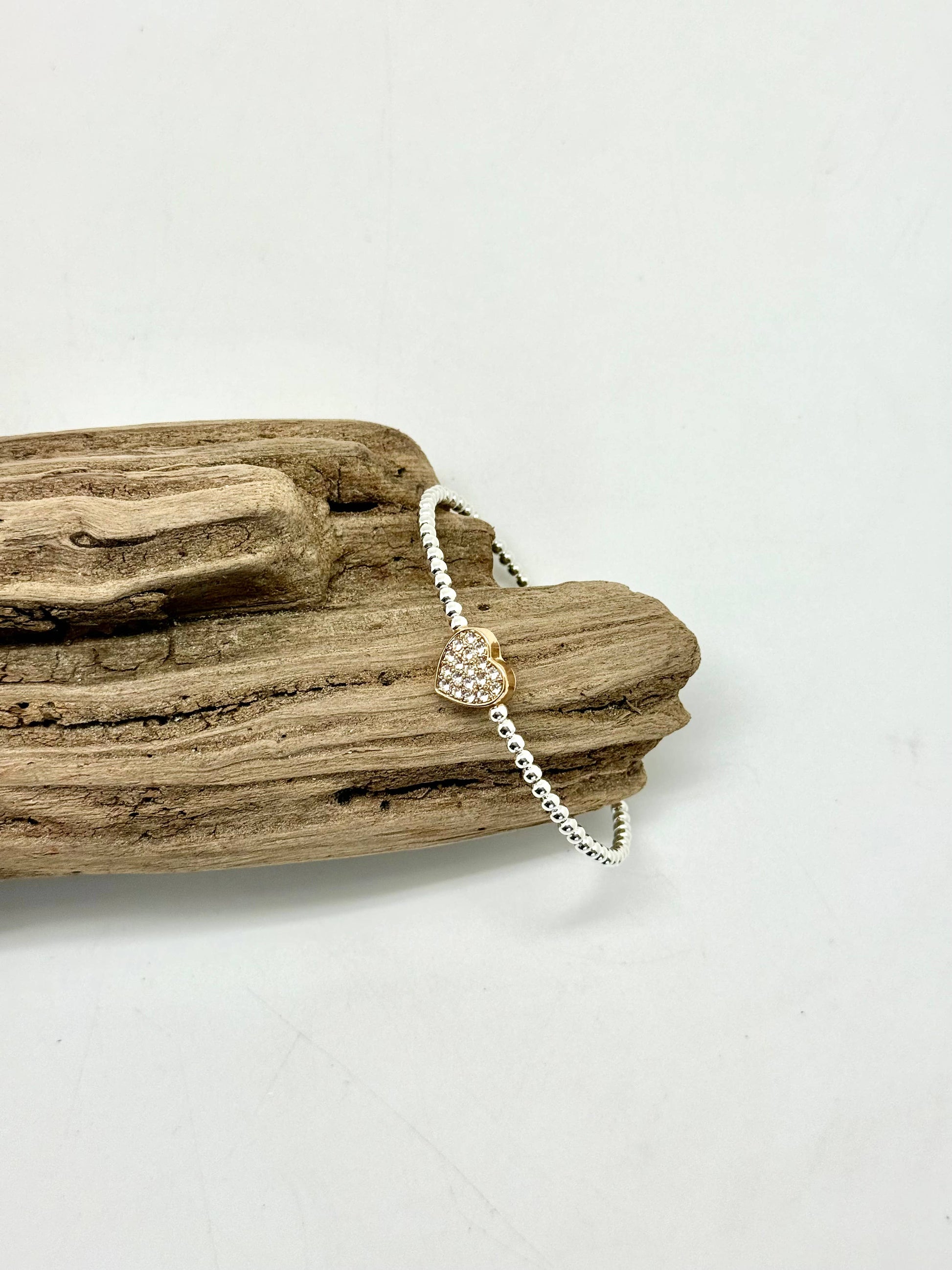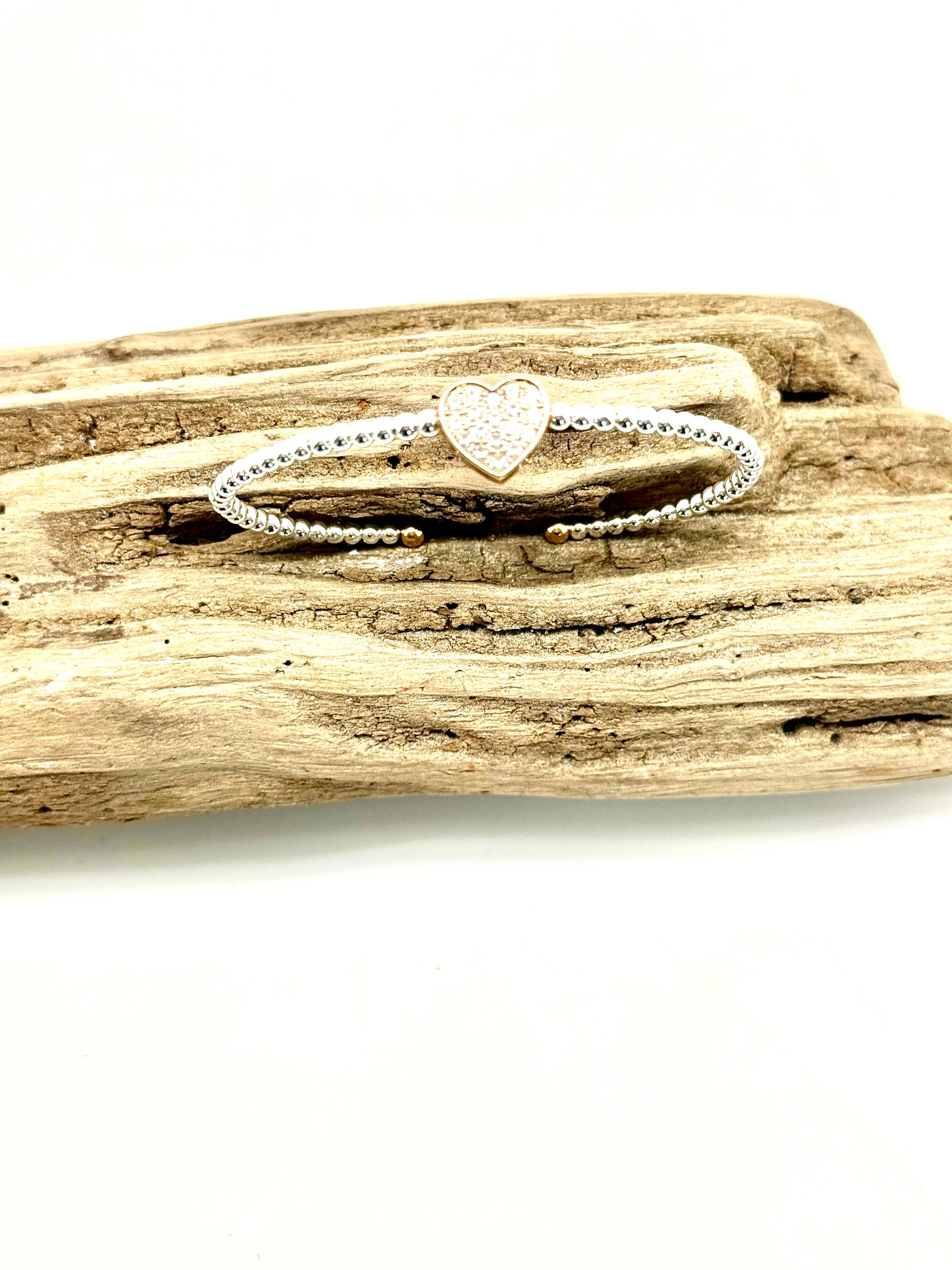 Cuff Glass Hearts High Quality Plated SilverBeads Adjustable