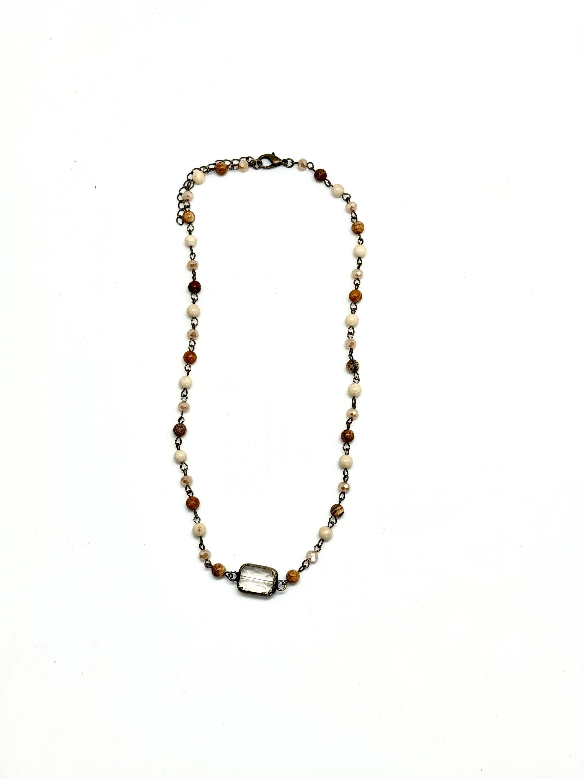 Necklace Picture Jasper (3mm)Picture Sq. Glass Drop 20” w/2”ext.