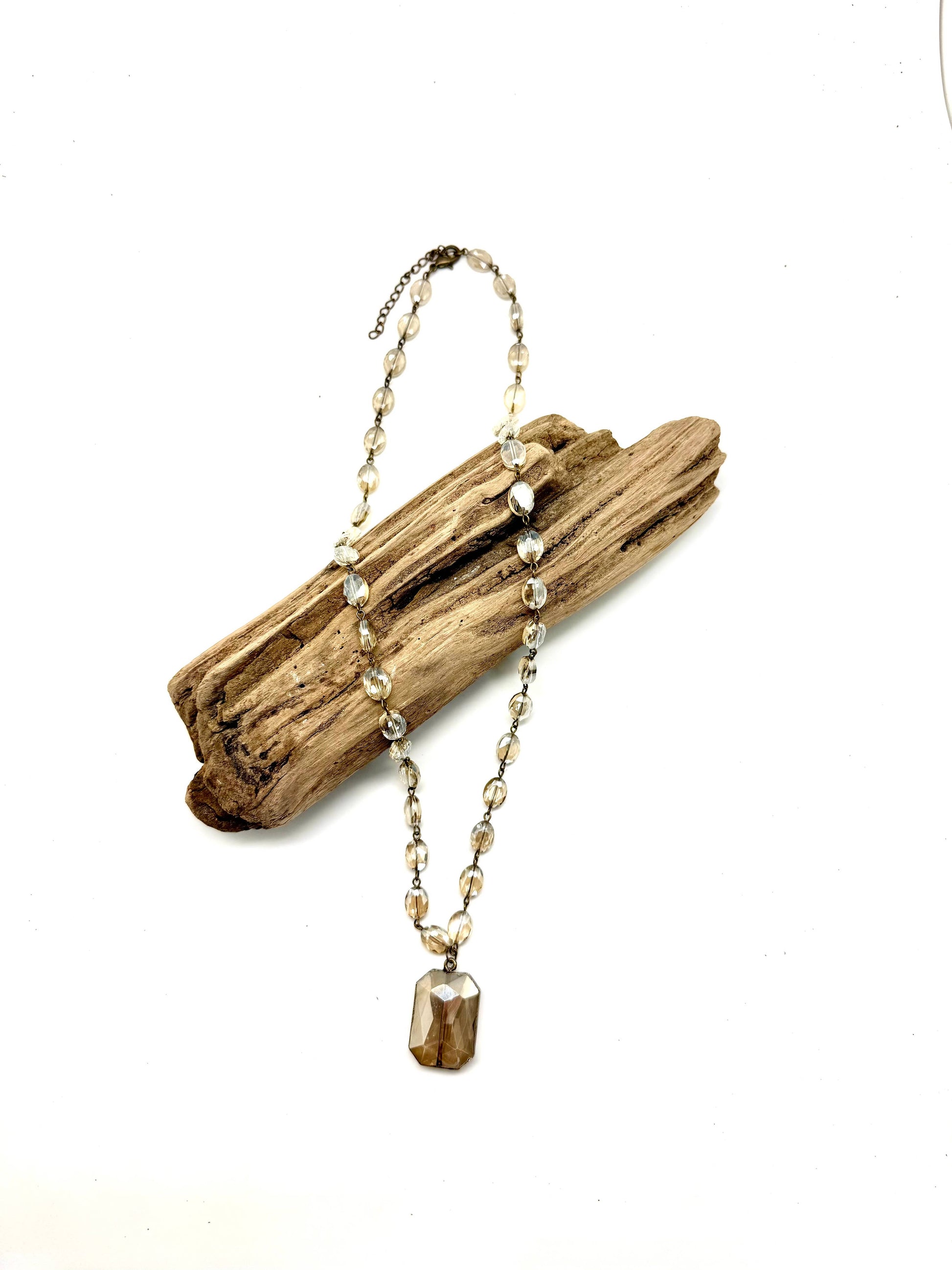 Necklace Vintage Beveled Glass Chain with Beveled Square Glass 26”