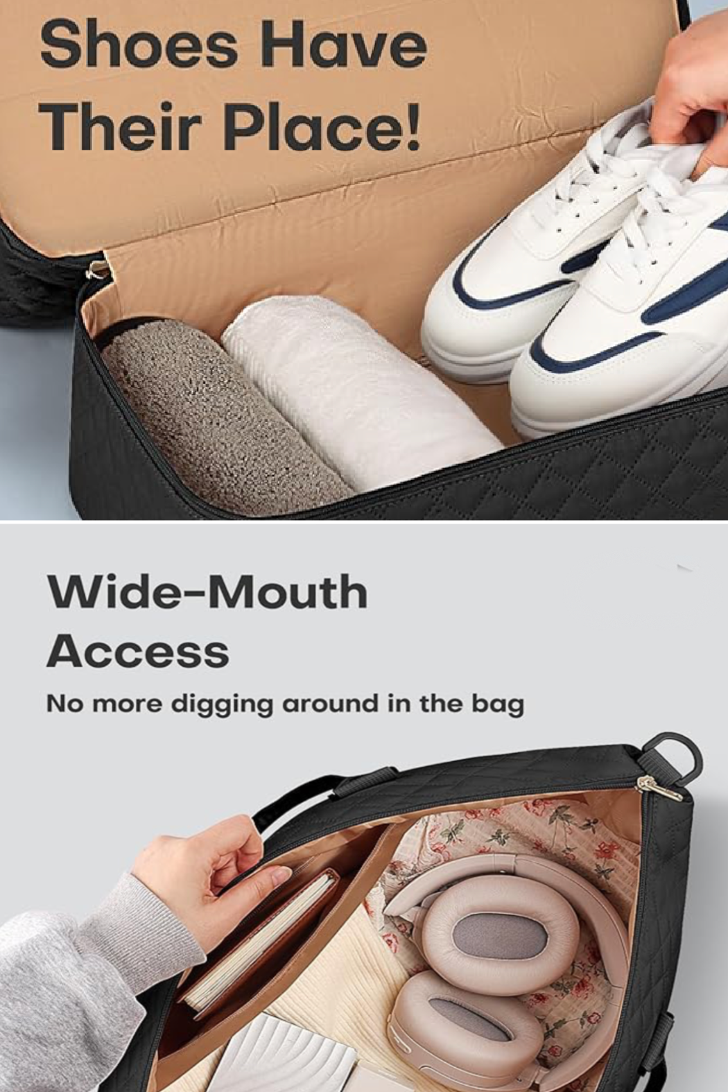 Travel in style with this playful Upcycled Duffel Weekender Bag! Upcycled with a crafted front detail from authentic Louis Vuitton materials, it’s not just chic but eco-friendly too. Sized perfectly to breeze through airport security, it fits carry-on rules and slides over your suitcase handle for hands-free fun. With a dedicated shoe compartment and a handy toiletry bag, all your essentials stay organized and ready for adventure. Compact yet roomy, this bag turns every trip into a stylish escape!